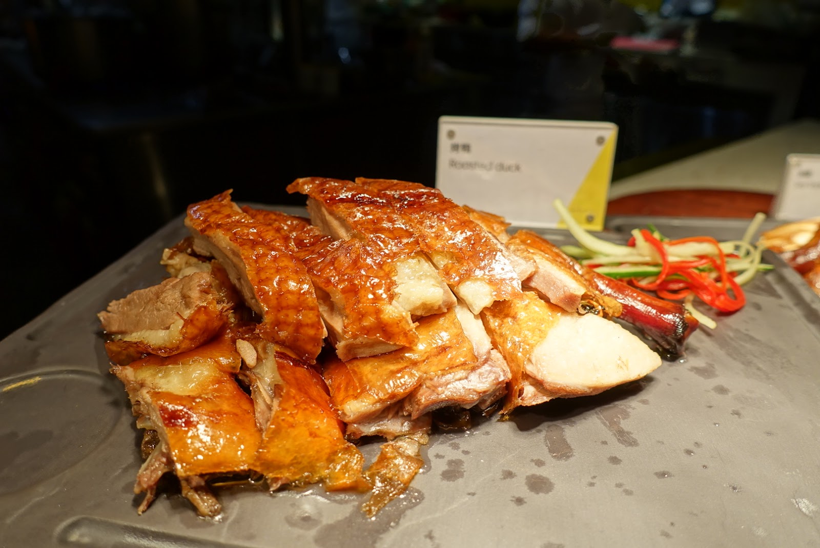 烤鴨、烤雞看起來油嫩美味,我嘗試了烤鴨肉,吃起來口感很好、切得也夠大塊。
