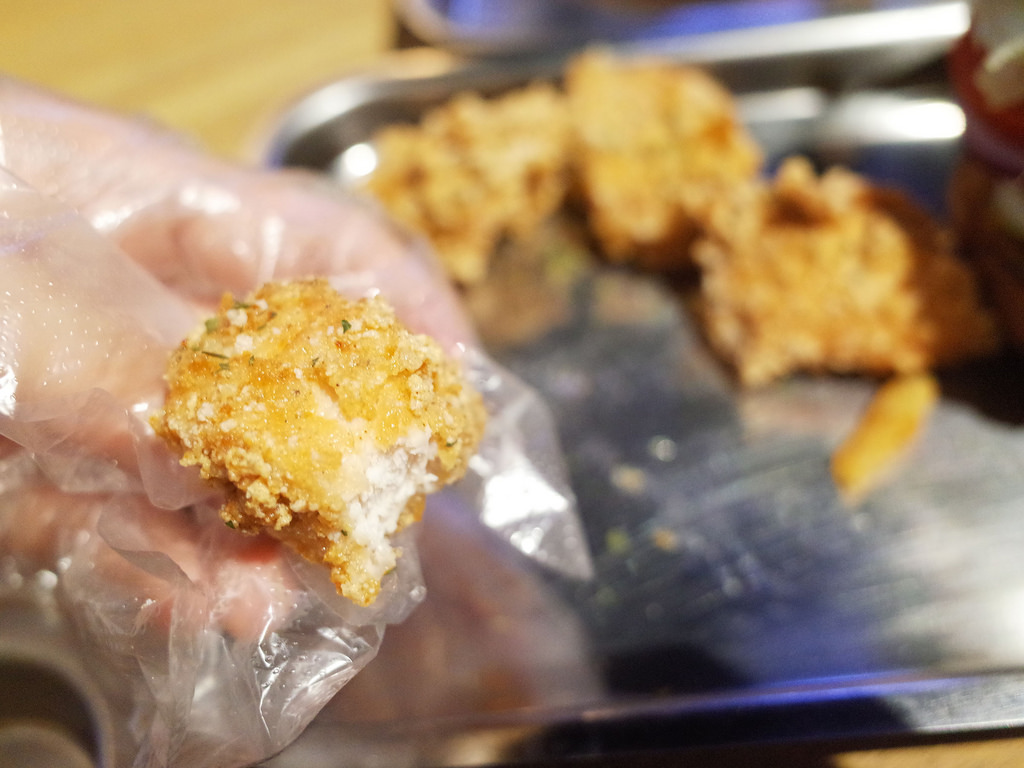 因為有醃過醬料再下去炸,吃起來稍微甜甜的,而且厚度切得很夠,咬起來十分飽口、滿足!!
