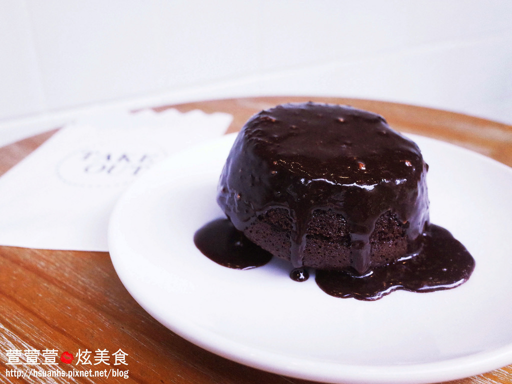 溫熱的布朗尼外頭淋了榛果巧克力醬,就像小瀑布般沿著蛋糕流下來,看起來超犯規