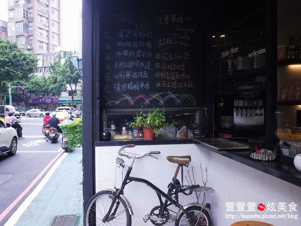 Take Out的外觀風格極為美式,跟旁邊道地台式公寓建築滿衝突的,所以格外顯眼