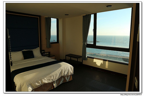 正好是傍晚時分,西曬的關係,所以拍起來不是太好看,不過其實窗戶一望出去就是整片的海景喔!
