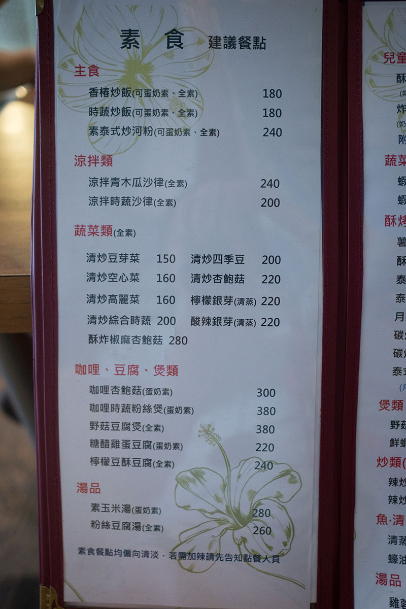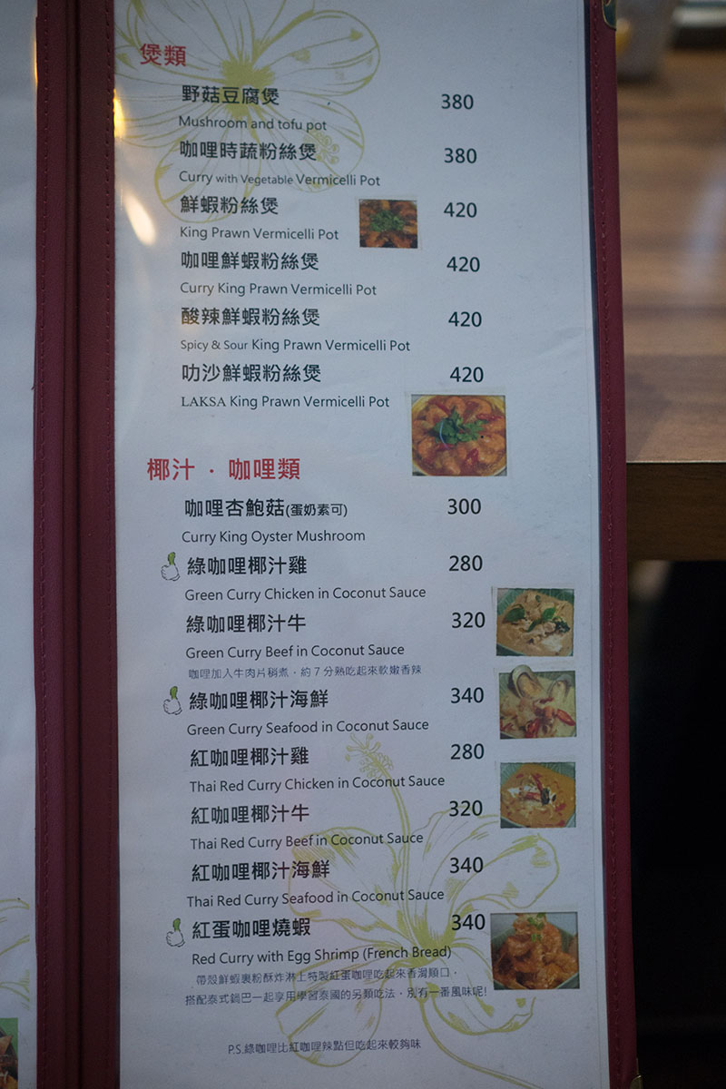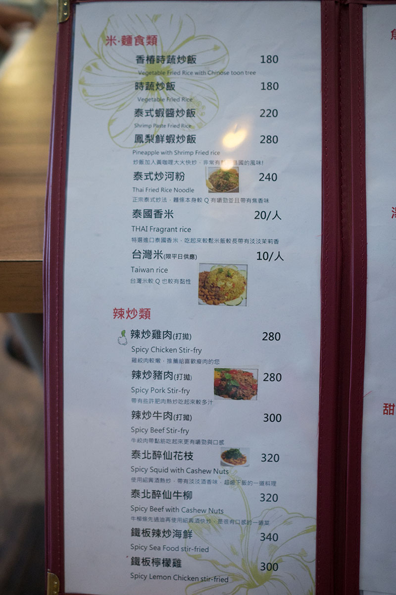 餐點部分以泰式料理為主,價格跟比較有名氣的泰式料理店差不多了,