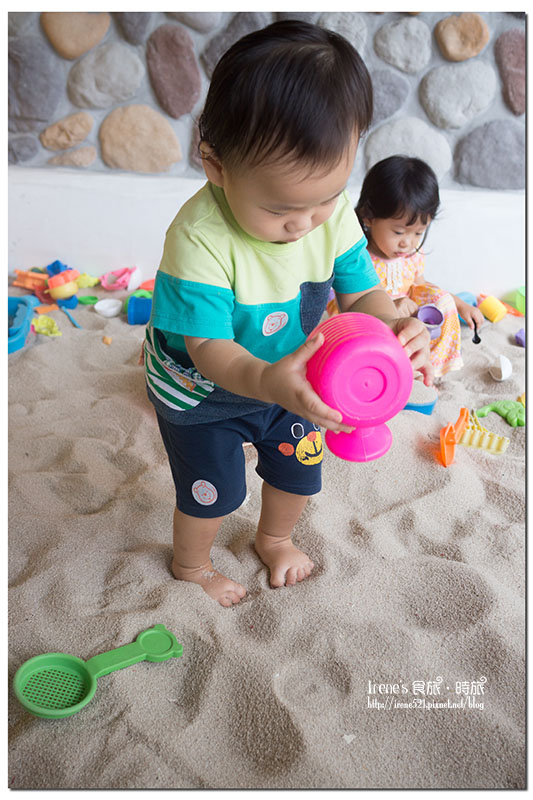 大球池跟沙池就能讓小孩玩到不亦樂乎,大人可以好好吃頓飯。