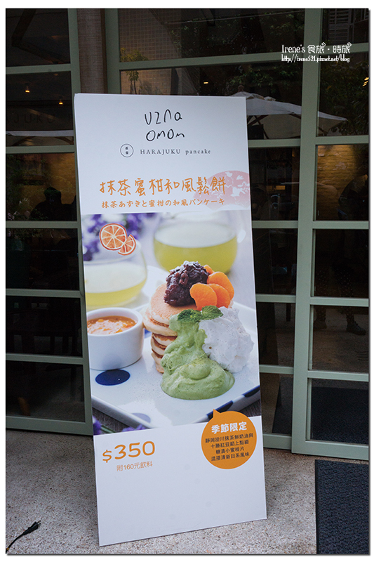 目前季節限定的為「抹茶蜜柑和風鬆餅」,恰巧是我愛的抹茶跟柑橘,但是有不愛的紅豆。