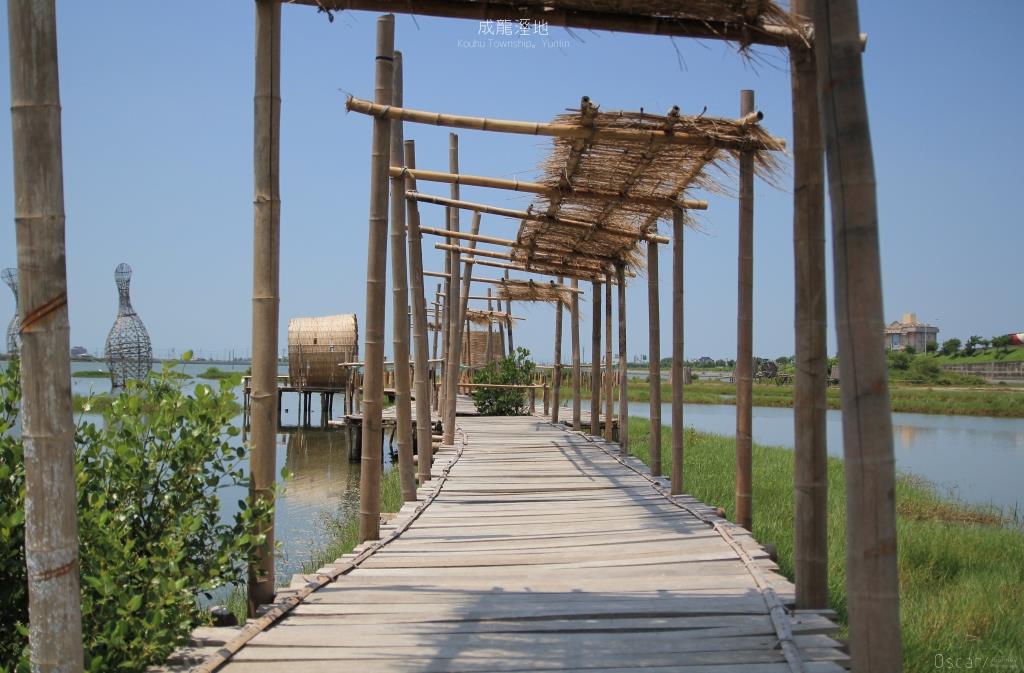 在連結的底端 運用竹編的技術 將成龍溼地框成一片景
