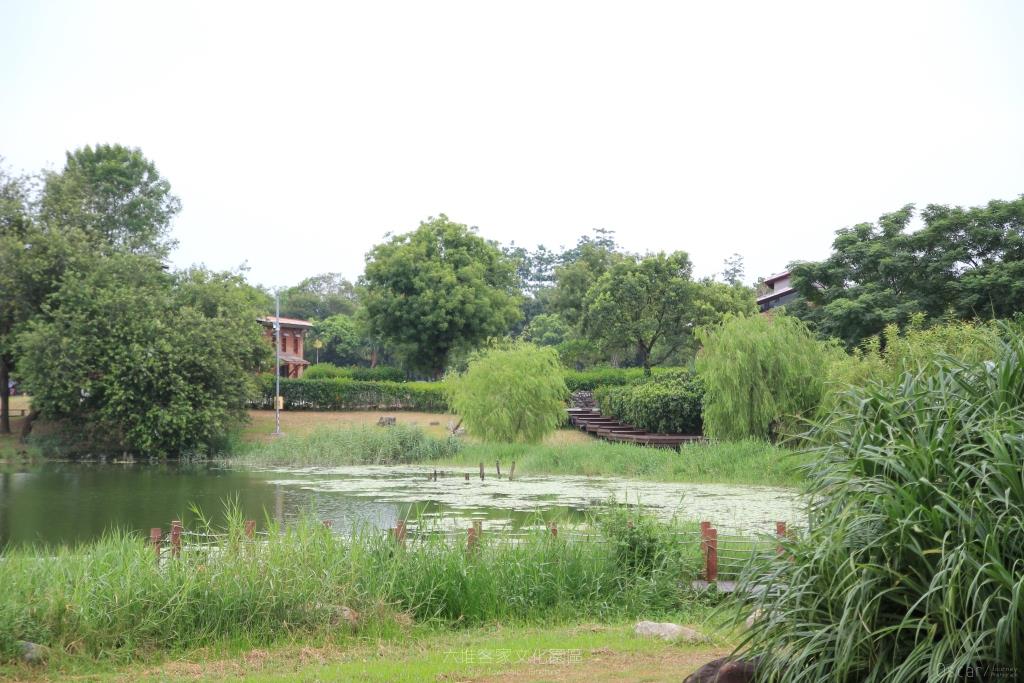 園區內設置了一處生態池 池畔旁種植了相當茂密的植栽