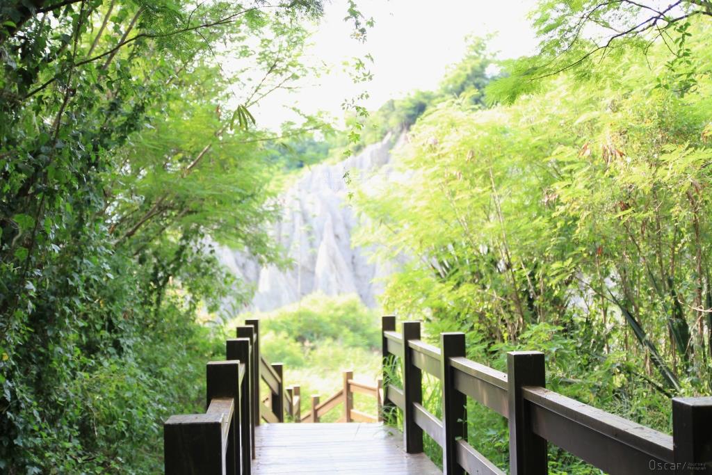 惡地地形在步道旁隱沒或顯露