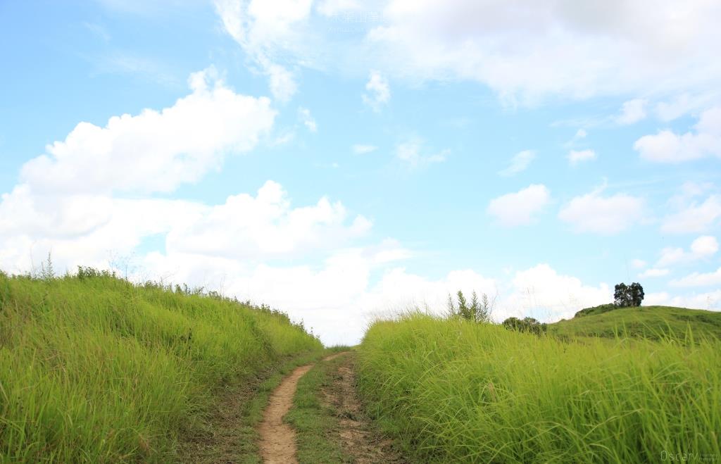 及腰的草叢 遮掩了在遠方偷偷轉彎的路途