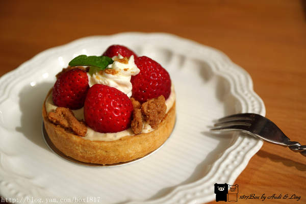 鮮嫩欲滴的新鮮草莓塔,酸酸甜甜的滋味搭配酥香塔皮,讓人一口接一口停不下來,