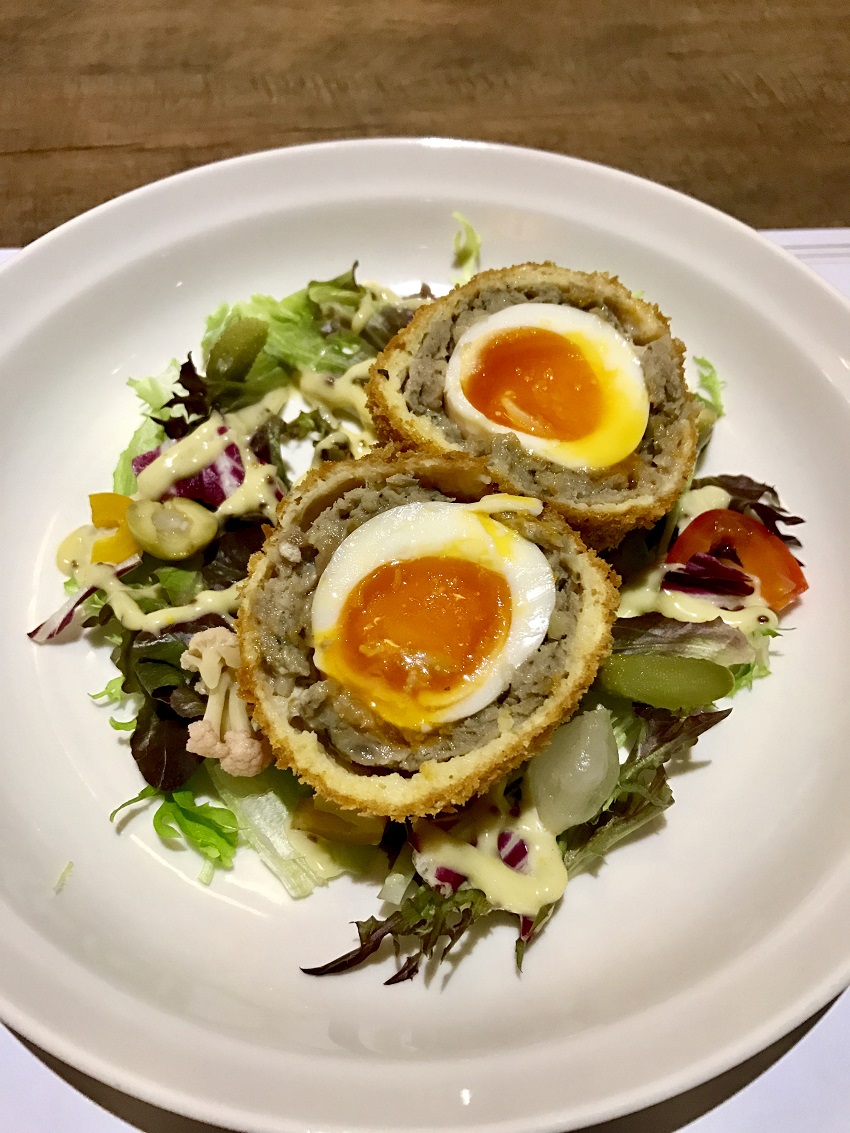 蘇格蘭炸彈 狂推的熱前菜之一 外層炸的很酥脆 蛋黃卻還是保持半熟的 包在肉餡當中