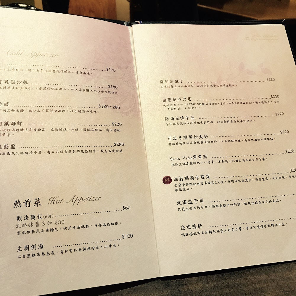 之前的松葉蟹海膽義大利麵 跟煙燻鴨胸蒜苗義大利麵則取消了