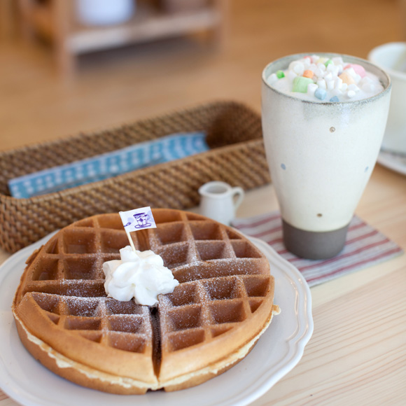 就在風格家居的雜貨小舖裡,享用一份阿寶親自調配的「厲害鬆餅」,有別於華麗配料的鬆餅配料,選擇保存麵皮純粹的的香酥滋味,擠上一朵鮮奶油,在淋上清香的楓糖,用最簡單的方式回到最原始的口味。喜愛甜品的你也可以搭配─「棉花糖可可歐蕾」,撒上彩色香甜可口的彩虹棉花糖,香濃可可加上綿密的鮮奶油奶泡,滑順潤口的風味,一口接一口的啜飲,可口甜蜜繚繞心頭。