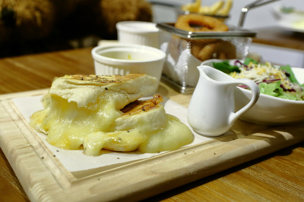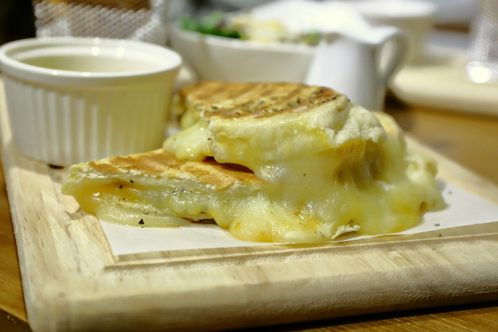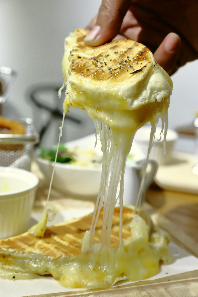 邪惡破表的起司瀑布,沿著帕尼尼緩緩流下,整個鋪得滿滿的。。。就是要挑戰您的視覺與味蕾!!!
