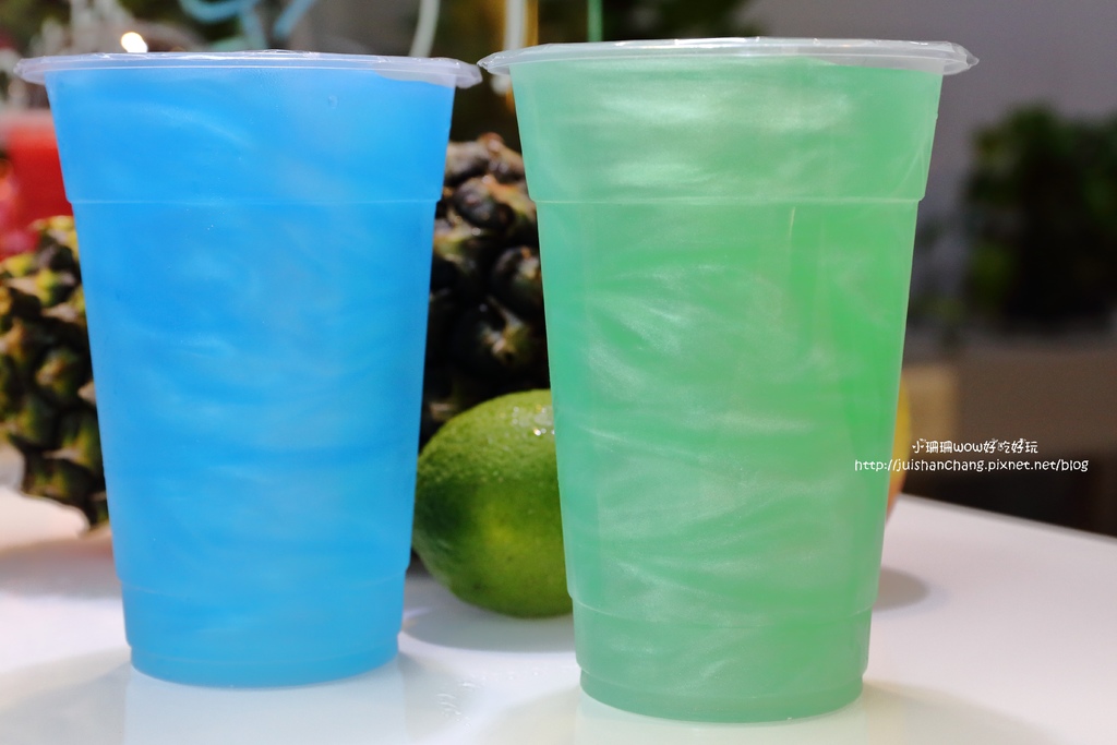 藍色是用藍甘+香蕉糖漿所調出來的,喝起來甜甜香香的,整個味覺很豐富