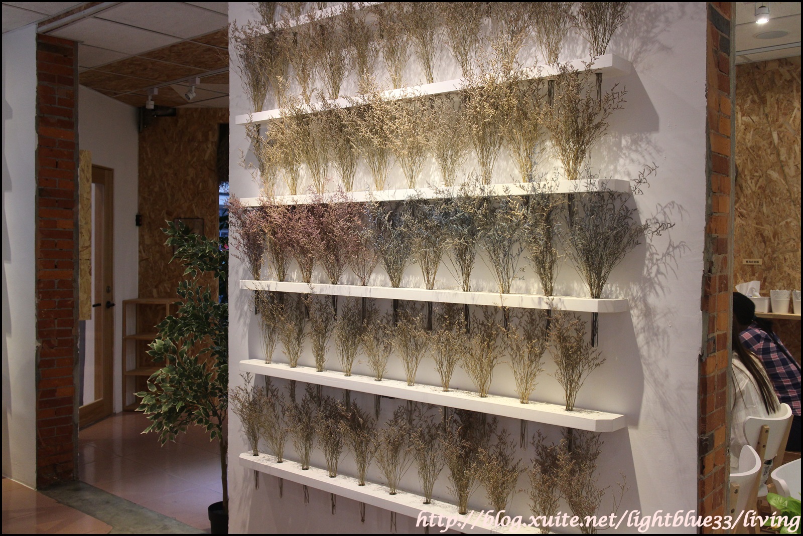 這一面乾燥花牆也帶有色彩