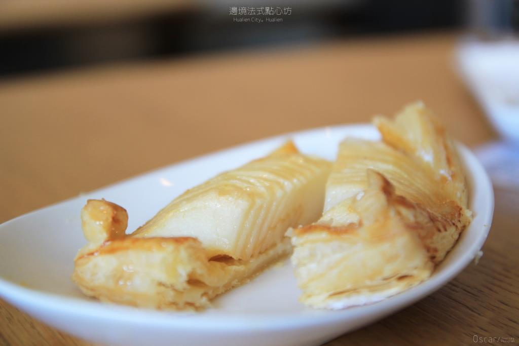 店家在蘋果片及千層酥之中加了薄薄一層的卡士達醬 在食用的過程增加些許濕潤的感受