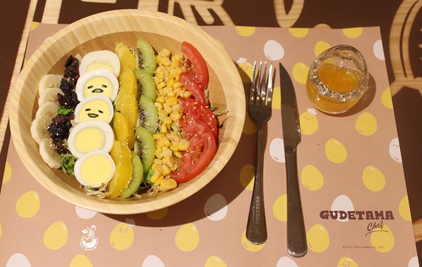 Gudetama Chef 蛋黃哥, 蛋黃哥, 台北, 主題餐廳, 東區, 忠孝敦化站, 忠孝敦化捷運站, 蛋黃哥五星主廚餐廳, 東區地下街, 人氣餐廳, 日本, 彩色水果冰沙, 彩虹蔬果沙拉, 歡樂蛋殼聖代