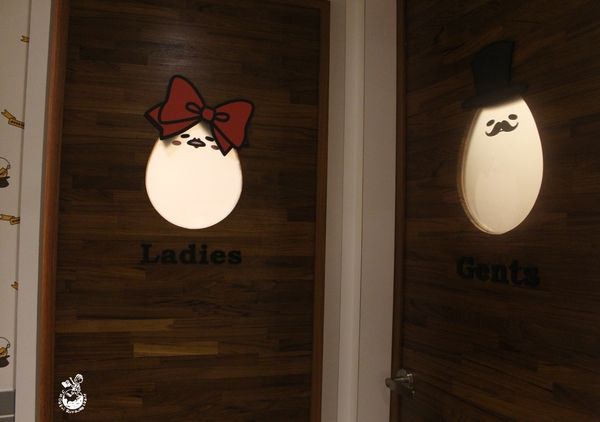 ▲廁所也很有趣光看門口男廁女廁的標示就會心一笑,當然裡面也是充滿蛋黃哥,就留給大家自己去上廁所時觀賞囉!!!! 沒辦法~蛋黃哥五星主廚餐廳太好拍了,處處留心處處皆是蛋黃哥,如果將每一處的照片全放上來這篇網誌大概就跟論文一樣長了吧 (誇飾)