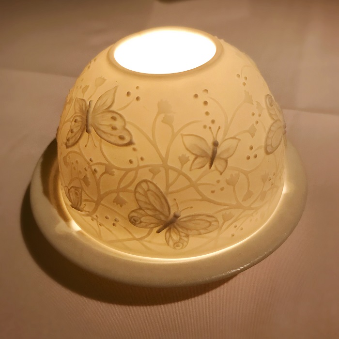用餐環境比較昏暗 就座後服務人員會先點這盞小燈 並提供礦泉水/氣泡水選擇