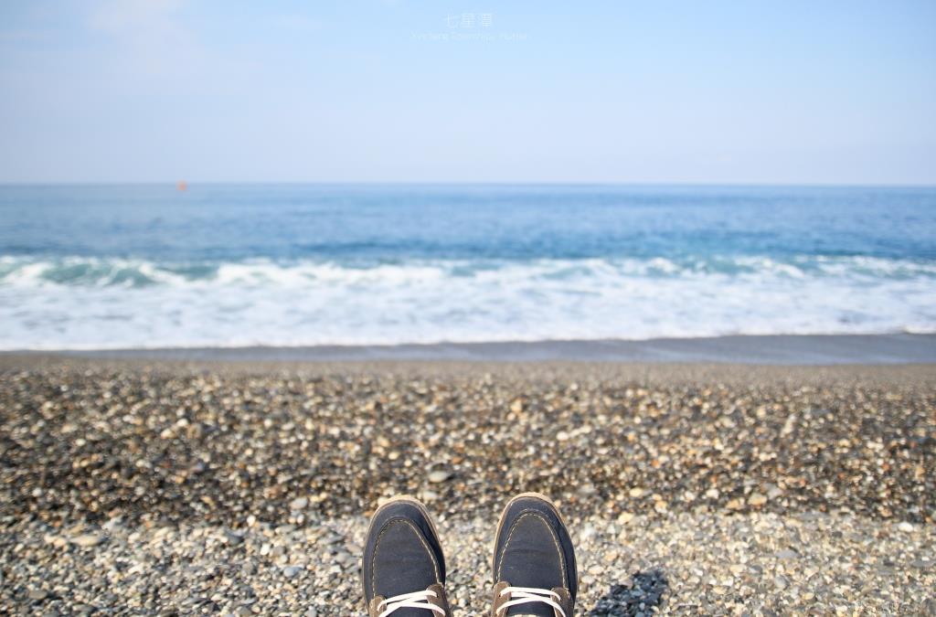 由礫石所組成的灘 呈現出與台灣西部沙灘完全不一樣的色調