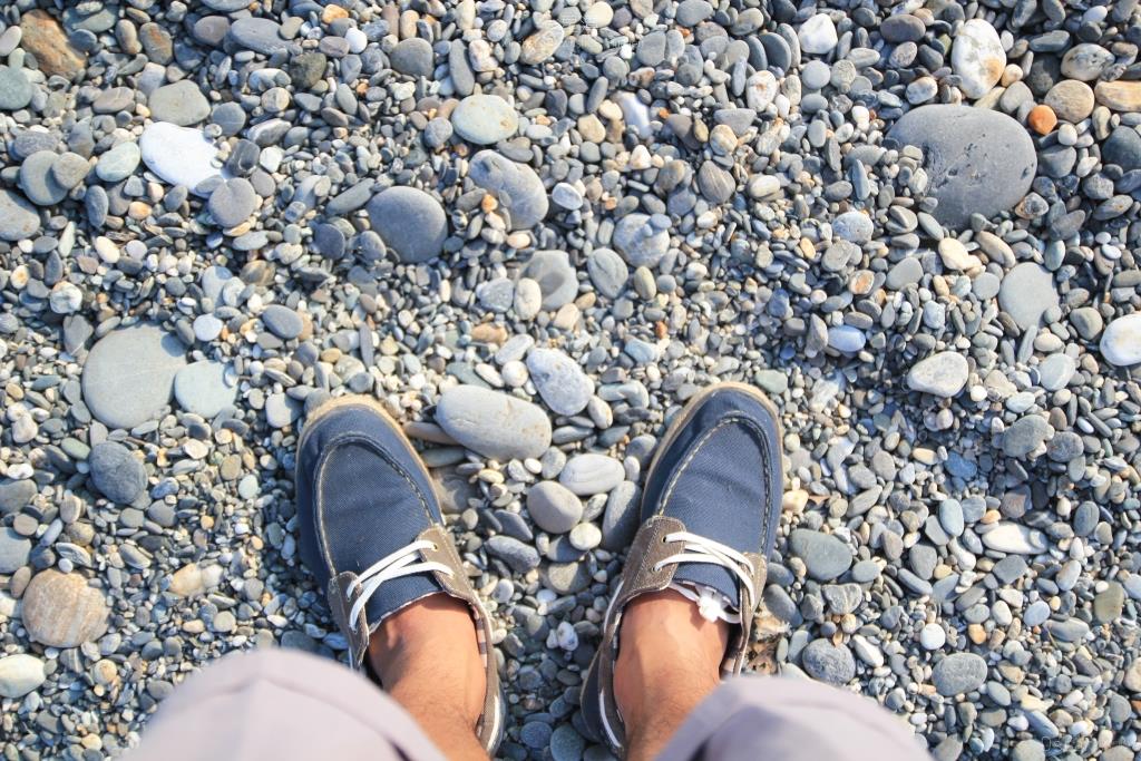 由大大小小礫石所組成的礫石灘 行走在其上 發出喀拉喀拉清脆的聲響