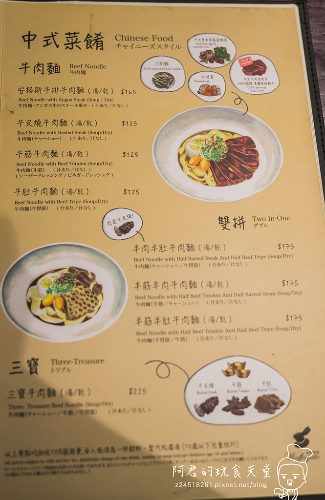 ▼新推出的中式菜肴菜單,有各種傳統牛肉麵跟比較特別的牛排麵。