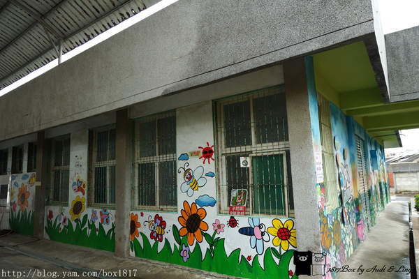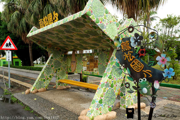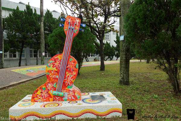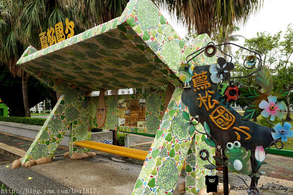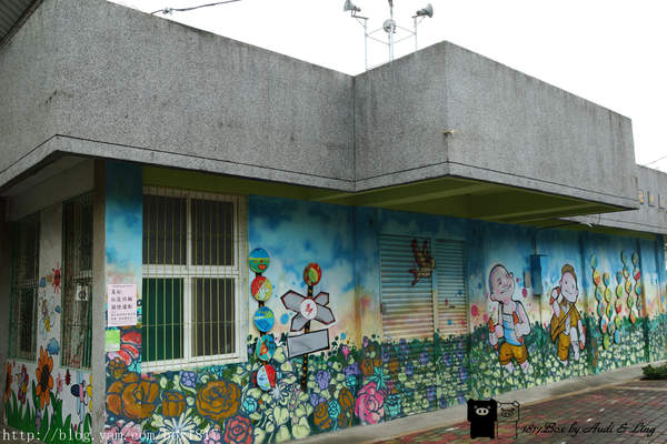 一到蔦松國小就能看到裝置藝術,還有大片的彩繪牆,