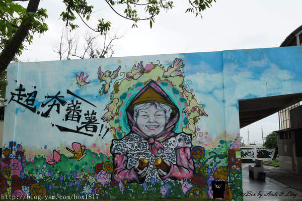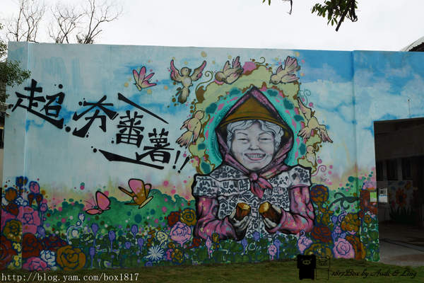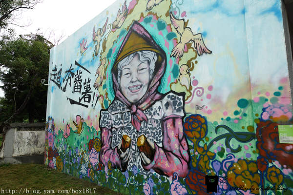 這一片大牆上彩繪的是雲林縣水林鄉的特產,蕃薯,
