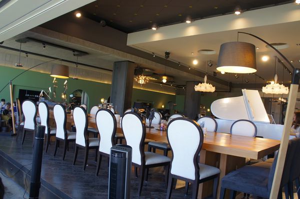 ▼表演舞台中間放置了一張長桌,可供多人入座