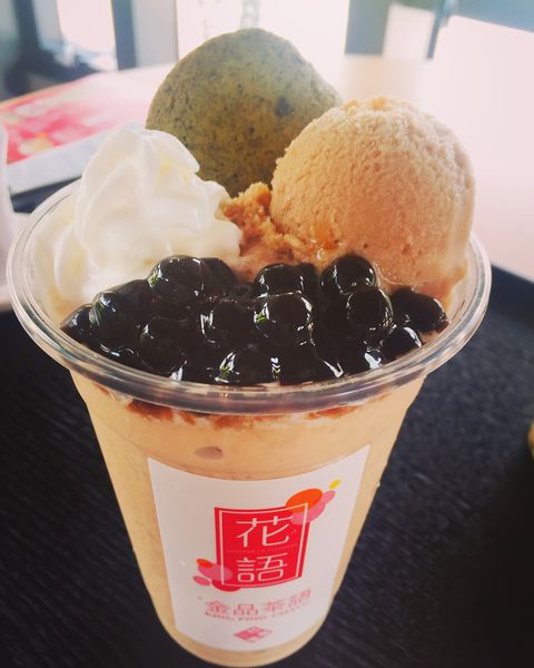 搭配店家自己熬煮的蜂蜜黑糖珍珠,
