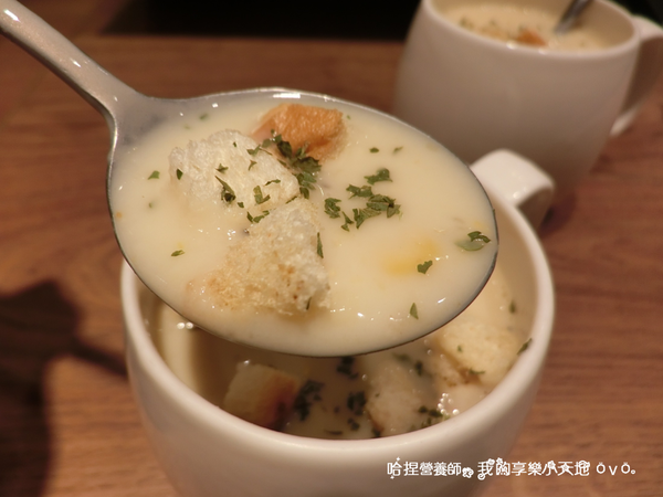 最喜歡麵包沾濃湯吃了,濃濃奶香搭配香蒜真是絕配啊~~~