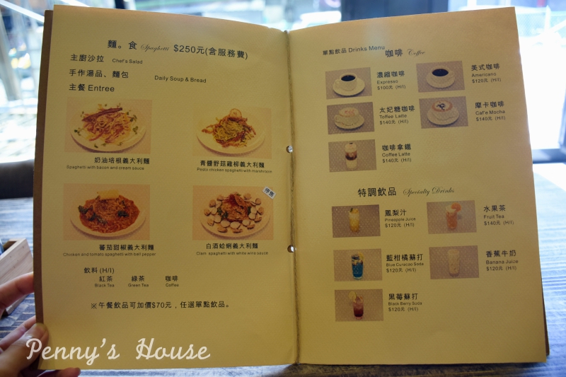 沒想到午餐的部分價格倒是相當平價,一套都是$250(含服務費),套餐有沙拉/湯品+麵包/主餐/飲品。(飲品加價NT$70可任選其他單品)