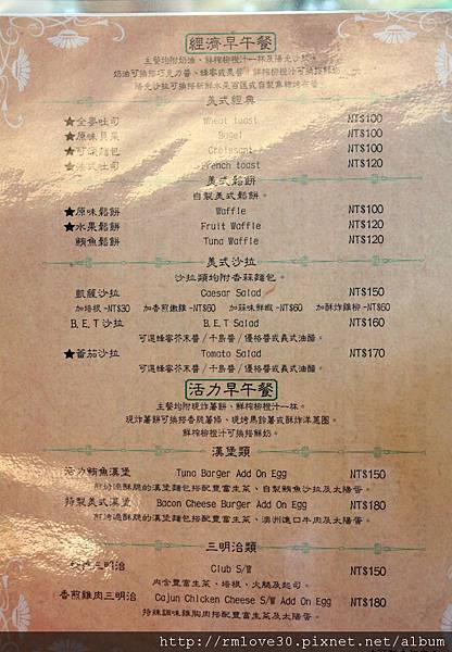 來看看菜單吧!這裡的早午餐分成不少種,包括有經濟早午餐跟活力早午餐