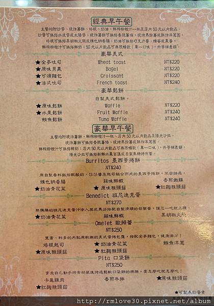 再來是經典早午餐跟豪華早午餐,價位就從220元到270元左右
