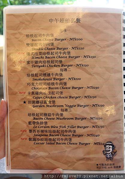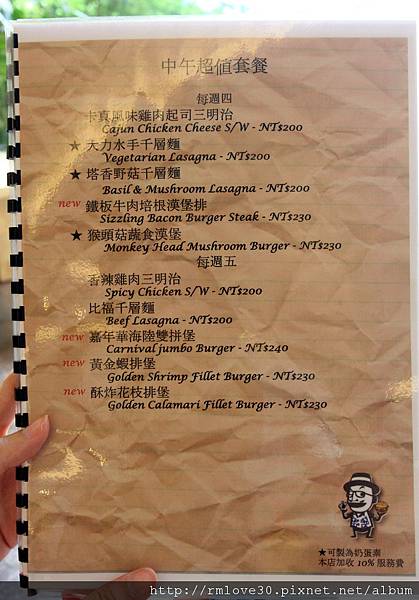 配菜部份可以選擇薯條 薯餅 洋蔥圈及現烤馬鈴薯,算是很特殊的一家店