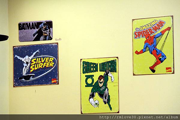 牆上還有很多美式卡通裡的英雄照片,看來老闆應該很喜歡這類型的漫畫