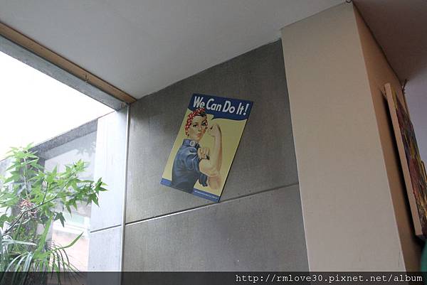 高牆上貼著一張標語:We Can Do It