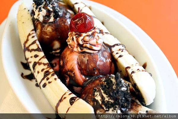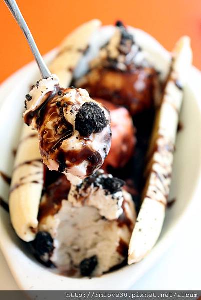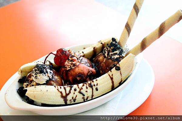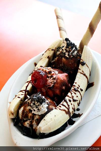 三球冰淇淋加上一整條香蕉剖半!!味道很好的樣子呀!