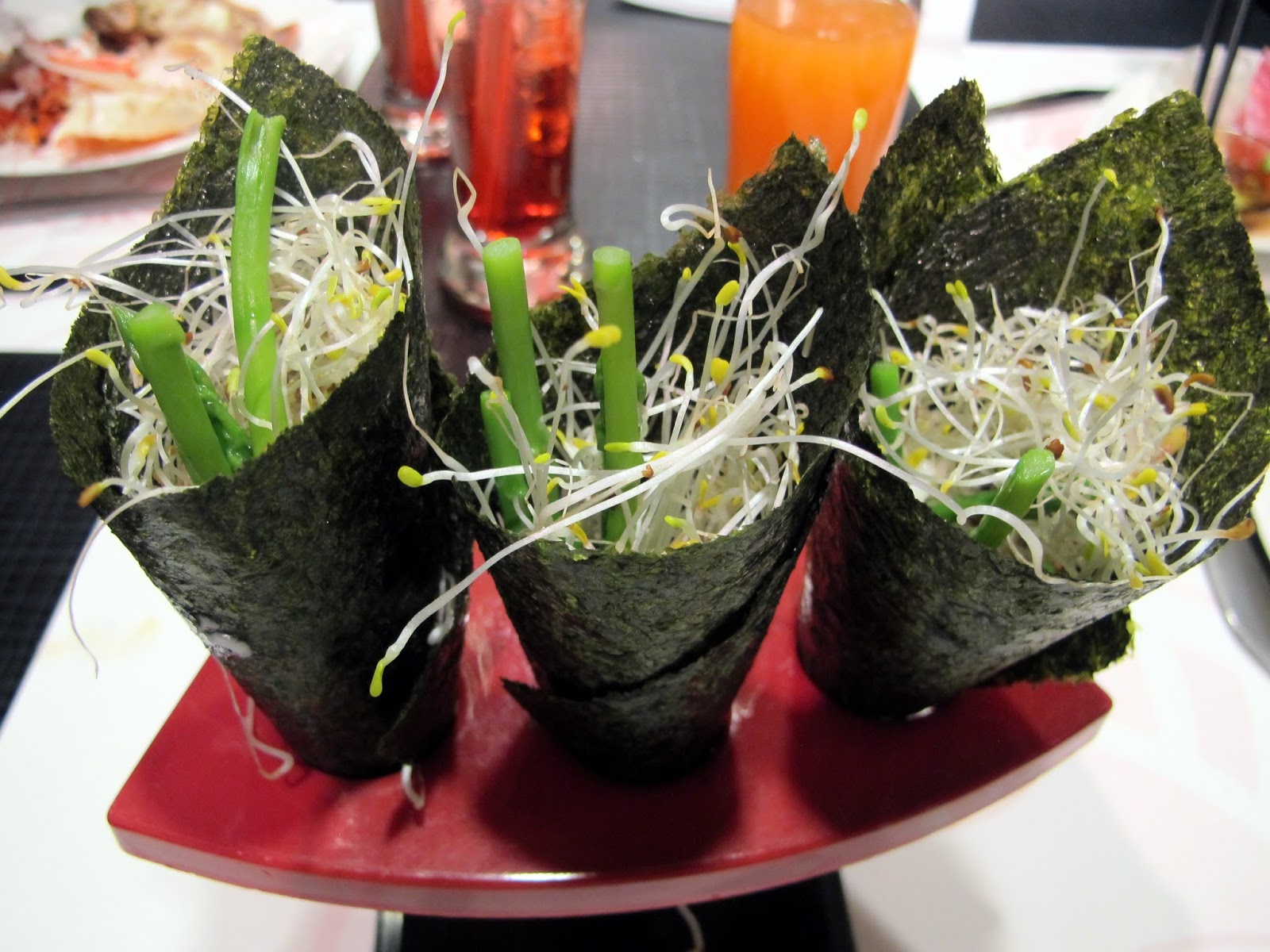 這手捲的海苔及蘆荀口感都很脆,但要快點吃海苔才不會口感潤潤低 XD