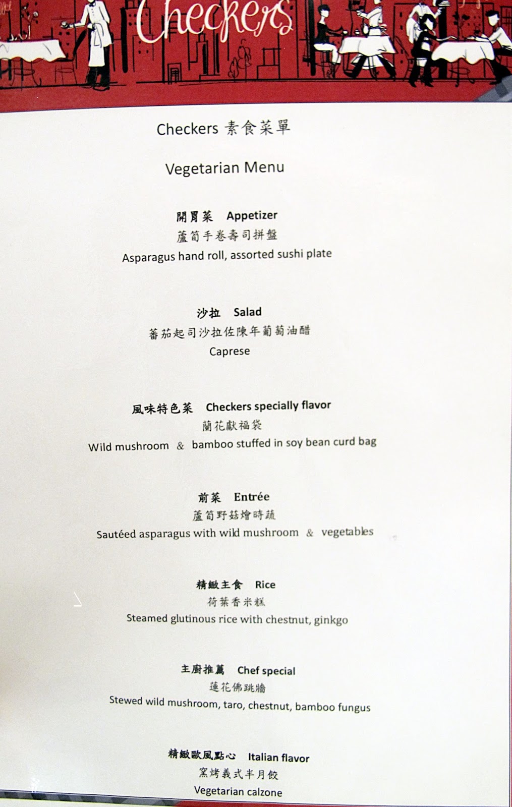 Checkers素食菜單共有七樣,不用怕吃不飽因為它也是可續點的哦!
