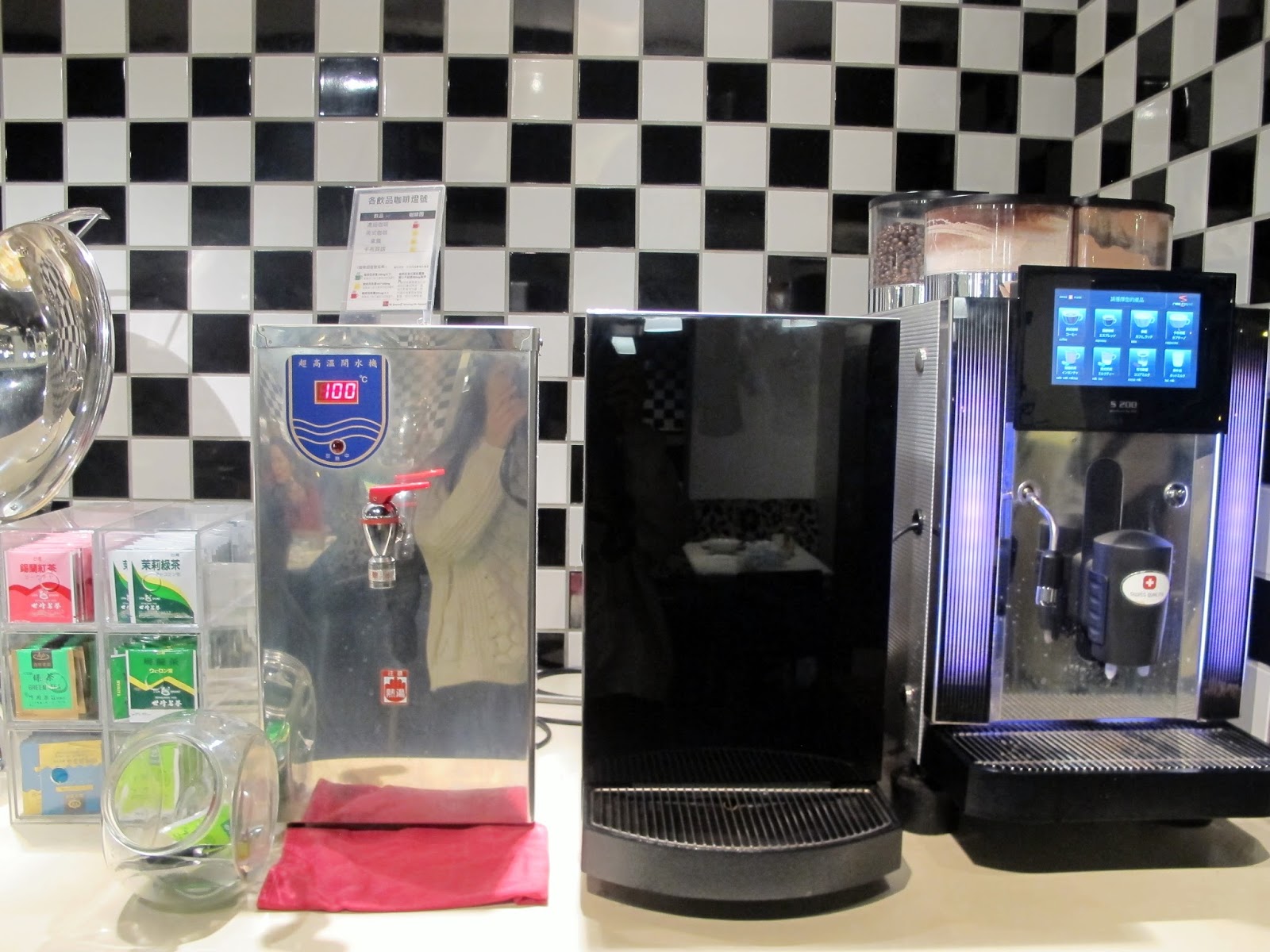 店內裝潢運用黑、白、紅三色,營造出簡單大方風格