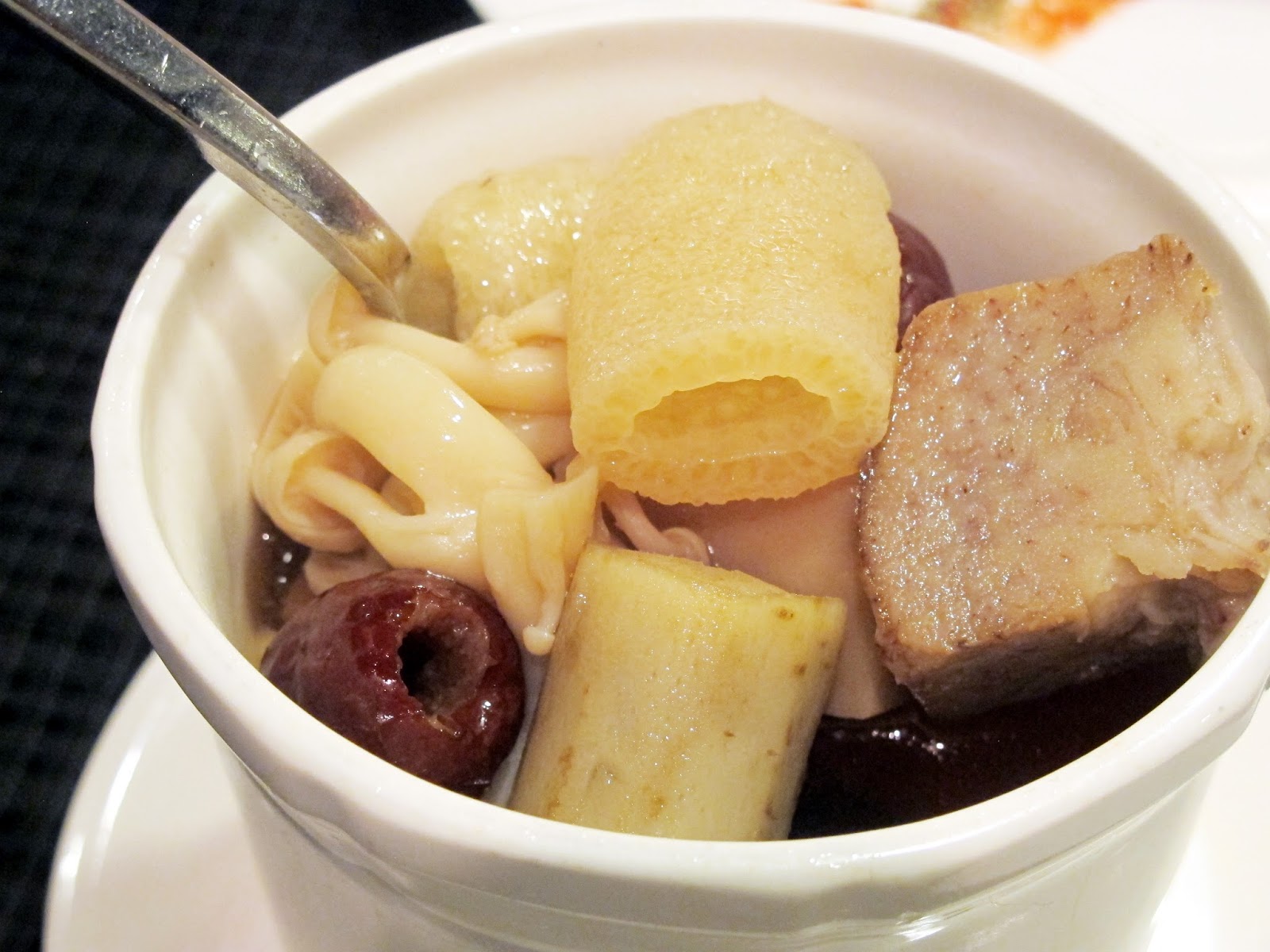 這湯頭濃郁好喝,裡頭料超多,尤其那軟嫩竹笙好好吃