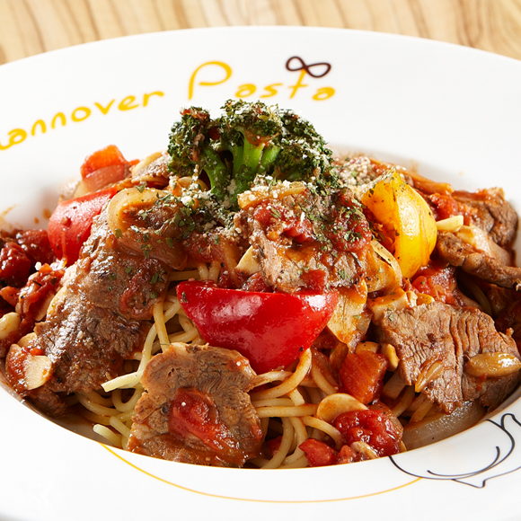 主廚特推的「香煎紅酒牛肉義大利麵」,紅酒與牛肉的激盪出諧和且美妙的火花,麵體浸潤在風味濃厚的的番茄紅醬基底,牛肉鮮美軟嫩,搭配上花椰菜與甜椒的清甜,完全包覆在醬汁中,放入口中,每一口都香氣逼人。