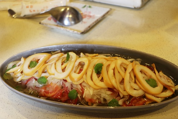 泰式墨魚洋蔥,墨魚經過煙燻,搭配清脆、酸甜的洋蔥,好開胃唷!!