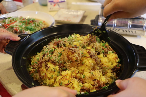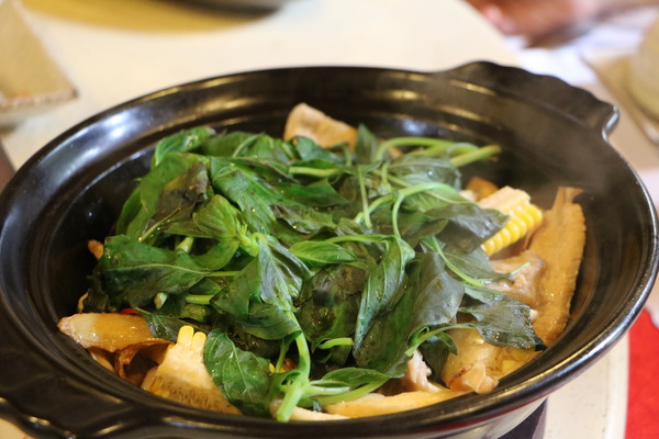 陶鍋蓋一打開來,陣陣花雕香氣直撲腦門啊!!松坂豬咀嚼脆度、嫰度恰到好處,還加上玉米拌炒,口感清甜、很討人喜歡喔。