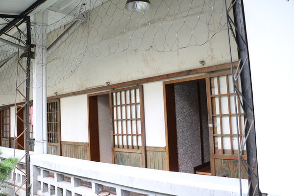 走廊的另一邊是日式庭院造景,裡面池塘還有魚兒優游,搭配懷舊黑色屋簷,好復古喔!!服務生說這裡不是店家所有,因此有使用鐵圍欄圍起來,避免打擾住戶。