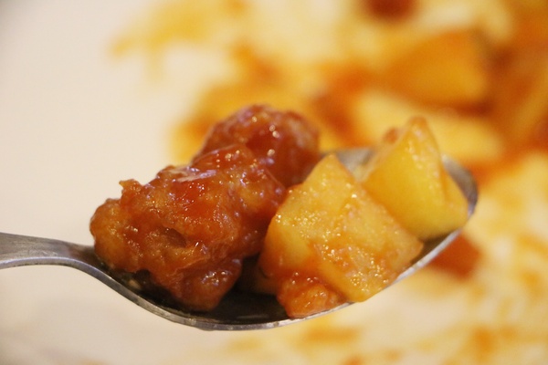 雞球加上蘋果拌炒,很清爽的一道菜!!