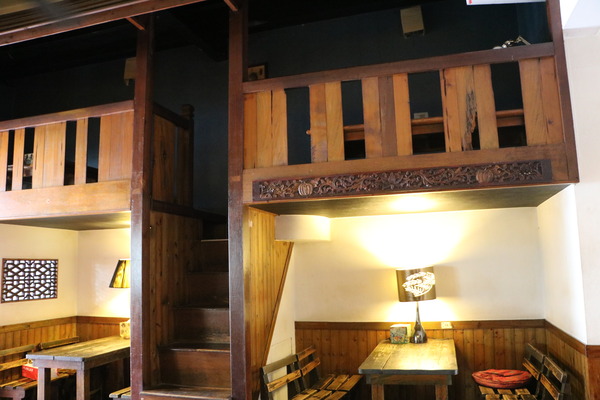 一進來餐廳,裡面燈光刻意營造昏暗、舒服的氛圍,上下舖小閣樓的設計也頗有設計感與時代感。