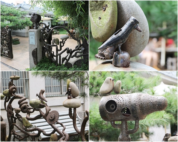 從巷子穿越虎尾老街,突然發現這一家,沙龍??!!這是一家茶館,大門的石頭鳥藝術作品是王忠龍大師的作品,鳥身是濁水溪的鵝卵石、鳥嘴是823砲戰的彈頭,還有鐵鎚改造的啄木鳥,好可愛又特別唷!!