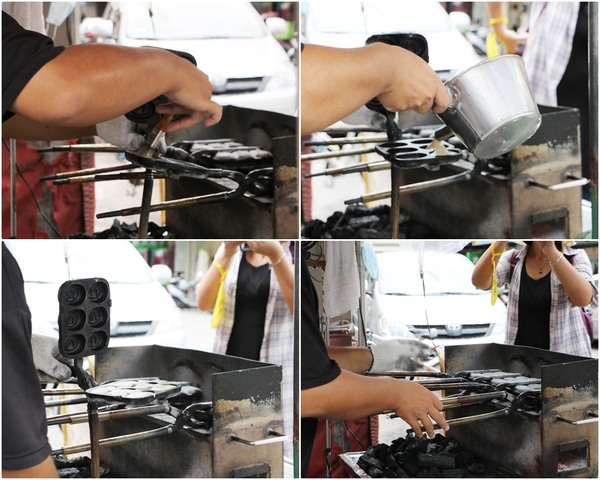 麵粉攪得十分濃稠,整個攤子瀰漫著濃郁的蛋香以及碳燒的氣息。